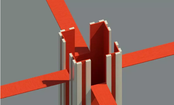梁柱節(jié)點采用開梁豁的形式,以保證不錯臺,不漏漿