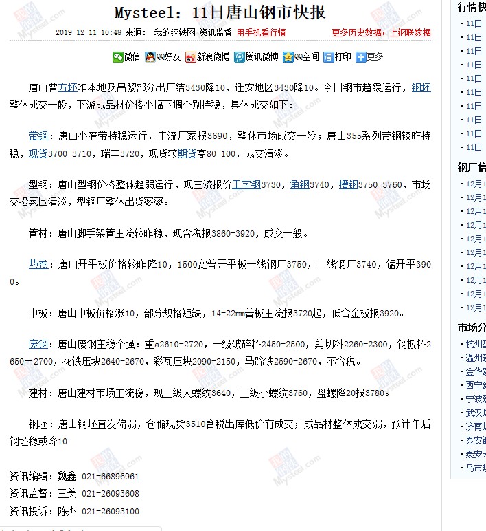 我的鋼鐵網(wǎng)201912111048分的權威報道