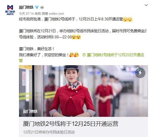 鑫毅:祝賀廈門地鐵2號(hào)線12月25日開(kāi)通